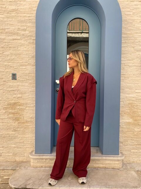 tailleur con giacca con spallina ballon